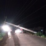 Veículo colide e derruba poste de energia na nova entrada do Município de Lagarto