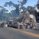Carreta carregada de algodão pega fogo e deixa rodovia federal totalmente interditada em Sergipe; VÍDEO