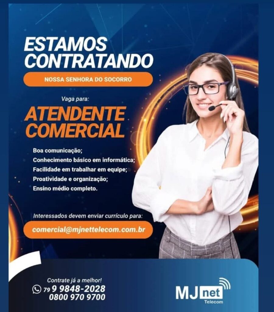 A MJ Net Telecom está com vaga aberta para o cargo de atendente comercial em Nossa Senhora do Socorro.